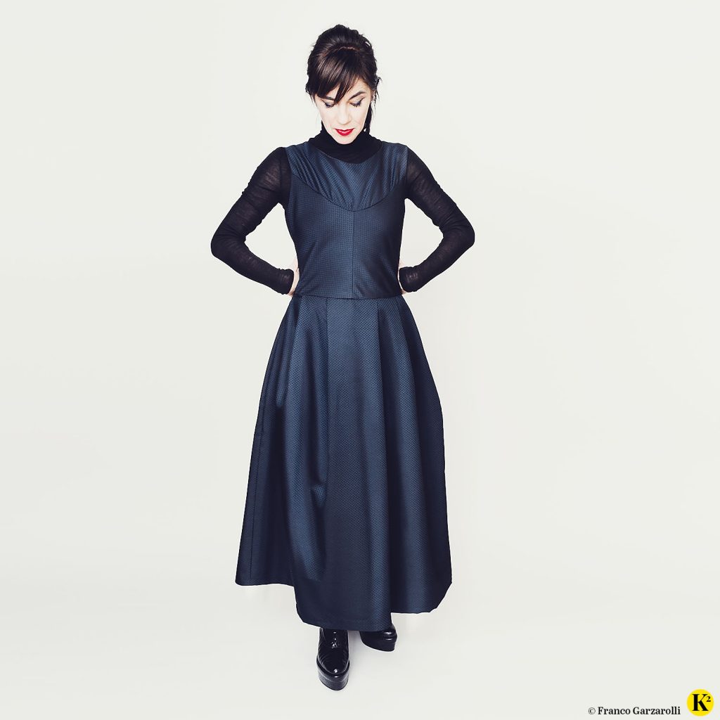 Meine Version davon. Dann hatte ich zwei Mal Glück. Zum einen, dass ich einen dunkelblauen Stoff gefunden haben, in den ich mich verliebt habe. Und dass eine liebe Freundin von mir gelernte Schneiderin ist. Et voilà, herausgekommen ist die mehrfach tragbare Winterversion meines Traums in weiß.